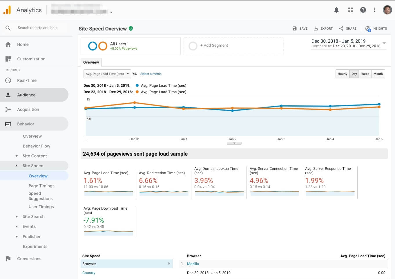 Перейдіть до розділу «Поведінка» > «Швидкість сайту» > «Огляд».