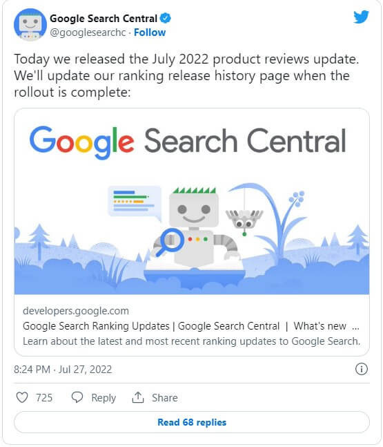 Google зробив оголошення у Твіттері, посилаючись на офіційну сторінку оновлень пошукового рейтингу.