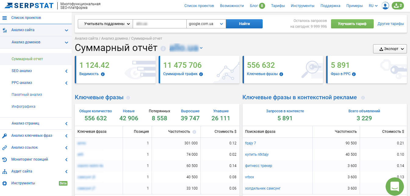 - використання сервісу Serpstat - це спеціальний ресурс, який надає можливість якнайшвидшого аналізу тих ключових слів, які запитуються. Програма відразу ж видає сайти конкурентів, які видно в пошуковій системі. Також за допомогою використання цього сервісу кожна людина має можливість зрозуміти, наскільки певна тематика сайту є конкурентною.