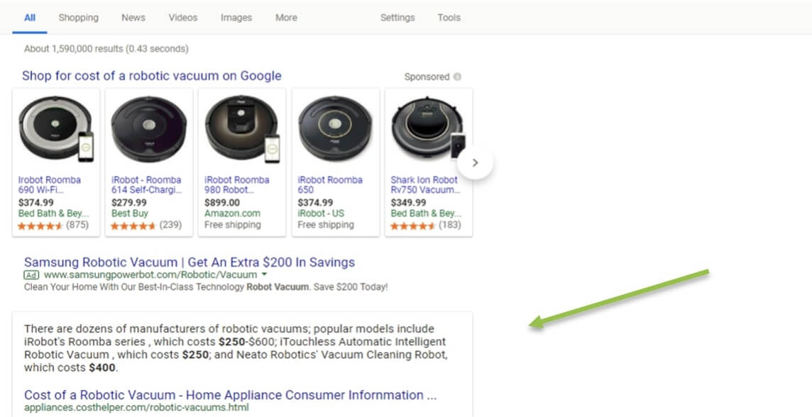 Але якщо ви шукаєте [телевізори], ви, ймовірно, хочете купити телевізор десь і побачите відповідні результати пошуку.
