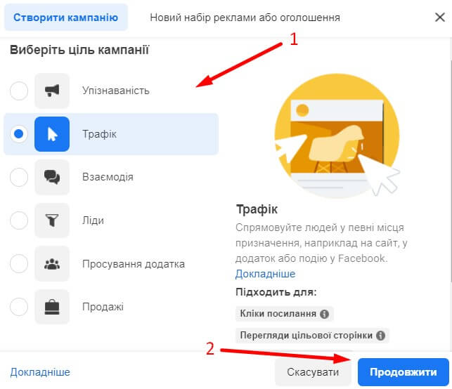 - Choose the goal of your campaign, such as increasing the number of clicks on the site or increasing brand awareness.
