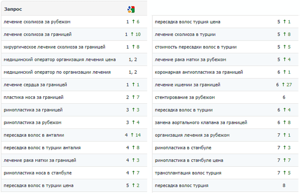 Так як терміни роботи над проектом були досить стислі, результат повинен був бути досягнутий максимально швидко. І його було досягнуто. Вже за підсумками другого місяця роботи над сайтом клієнта вдалося досягти зростання органічного трафіку на 16%. Кількість позицій у ТОП-10 Google була подвоєна, сайт значно покращив поведінкові характеристики, а значить, і відсоток конверсій.