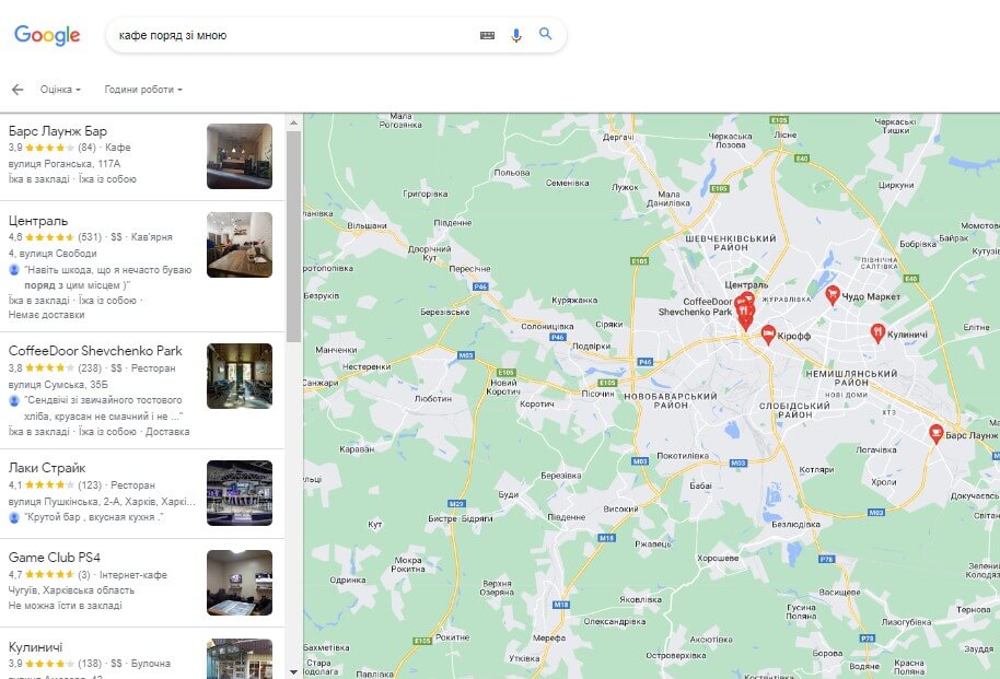 Вы хотите посмотреть, как Hot Javelin выдерживает конкуренцию в Харькове, поэтому вы переходите в Google и вводите [кафе рядом со мной].